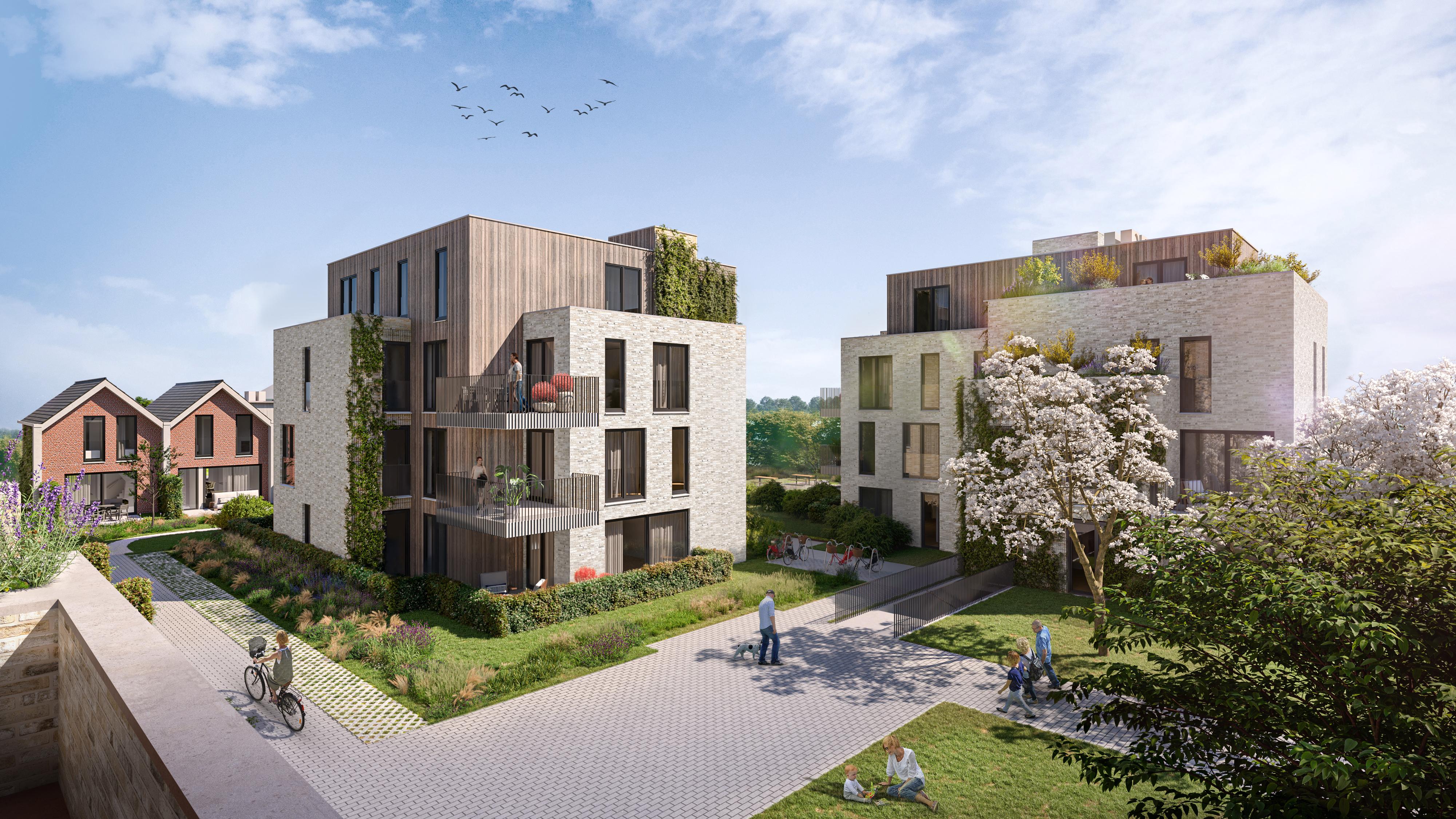 Duurzame materialen zoals o.a. houten gevelbekleding en de groene elementen, groendaken en gevelgroen staan centraal.